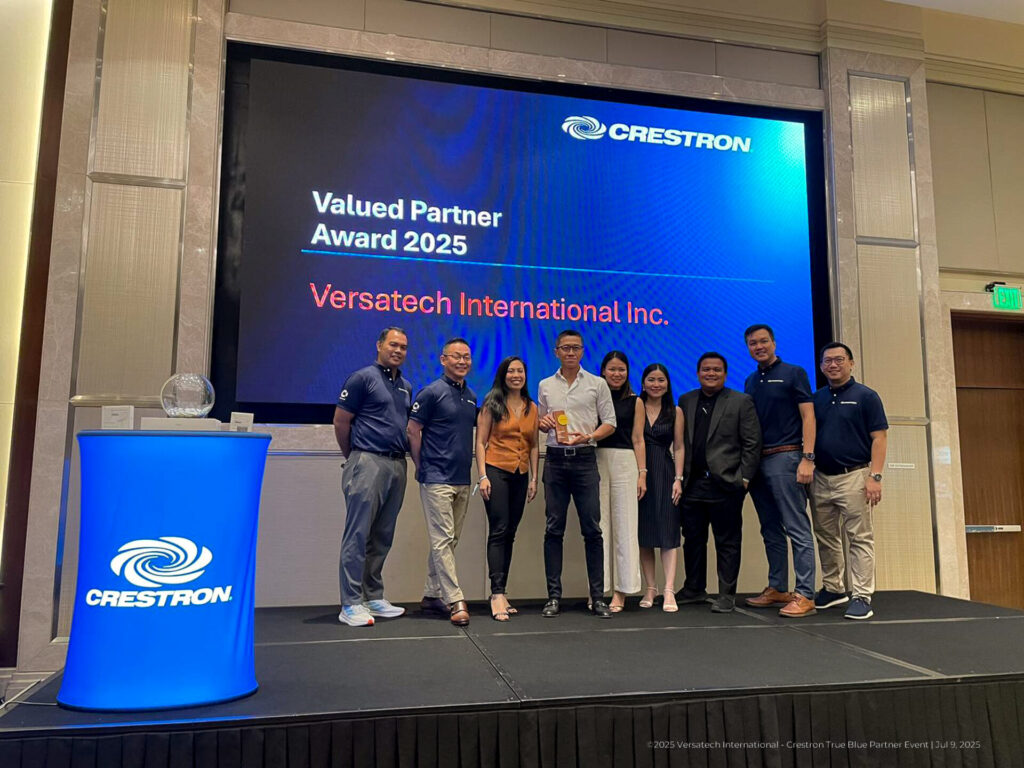 Philippines, July 9, 2025 — Versatech International Inc., a leading provider of Pro AV/IT and Unified Communications and Collaboration solutions in the Philippines was recognized with the “Valued Partner Award 2025” by Crestron, a global leader in professional AV technology for workspaces during the Crestron True Blue Partner Event at the Sheraton Ballroom, Sheraton Manila Hotel.